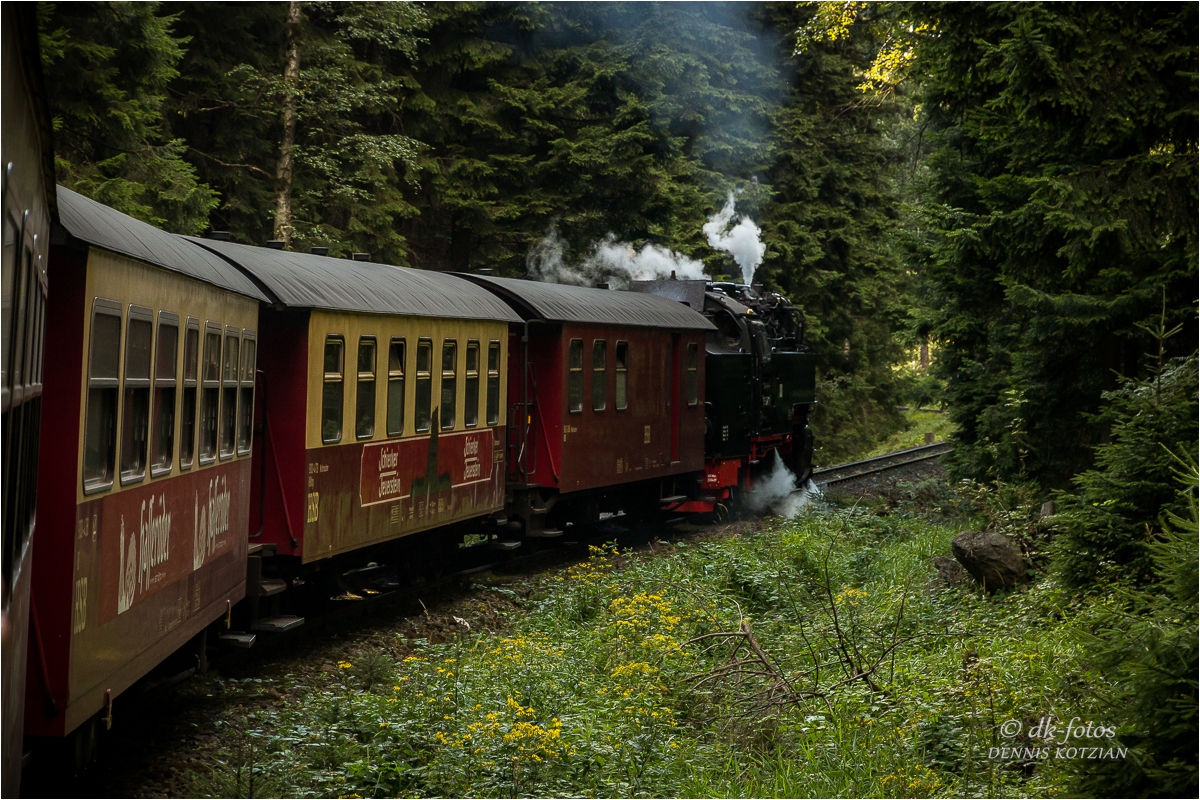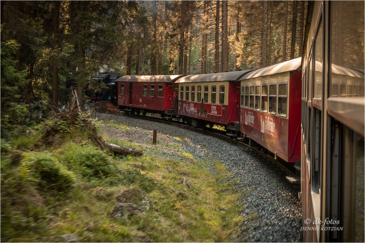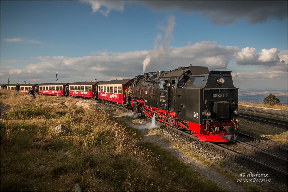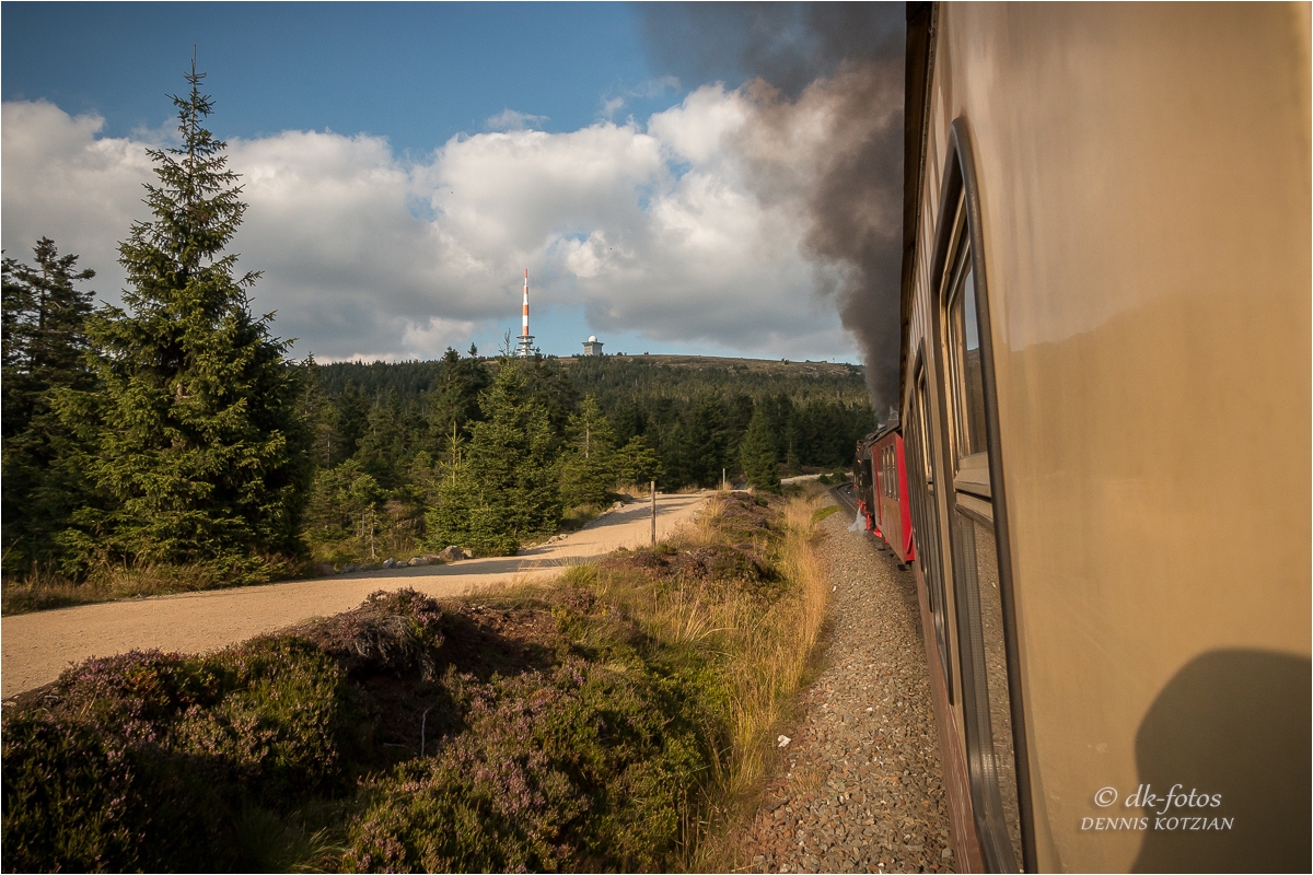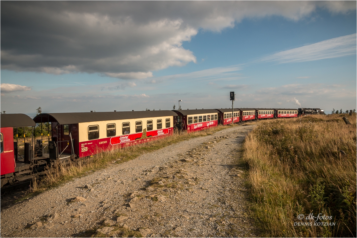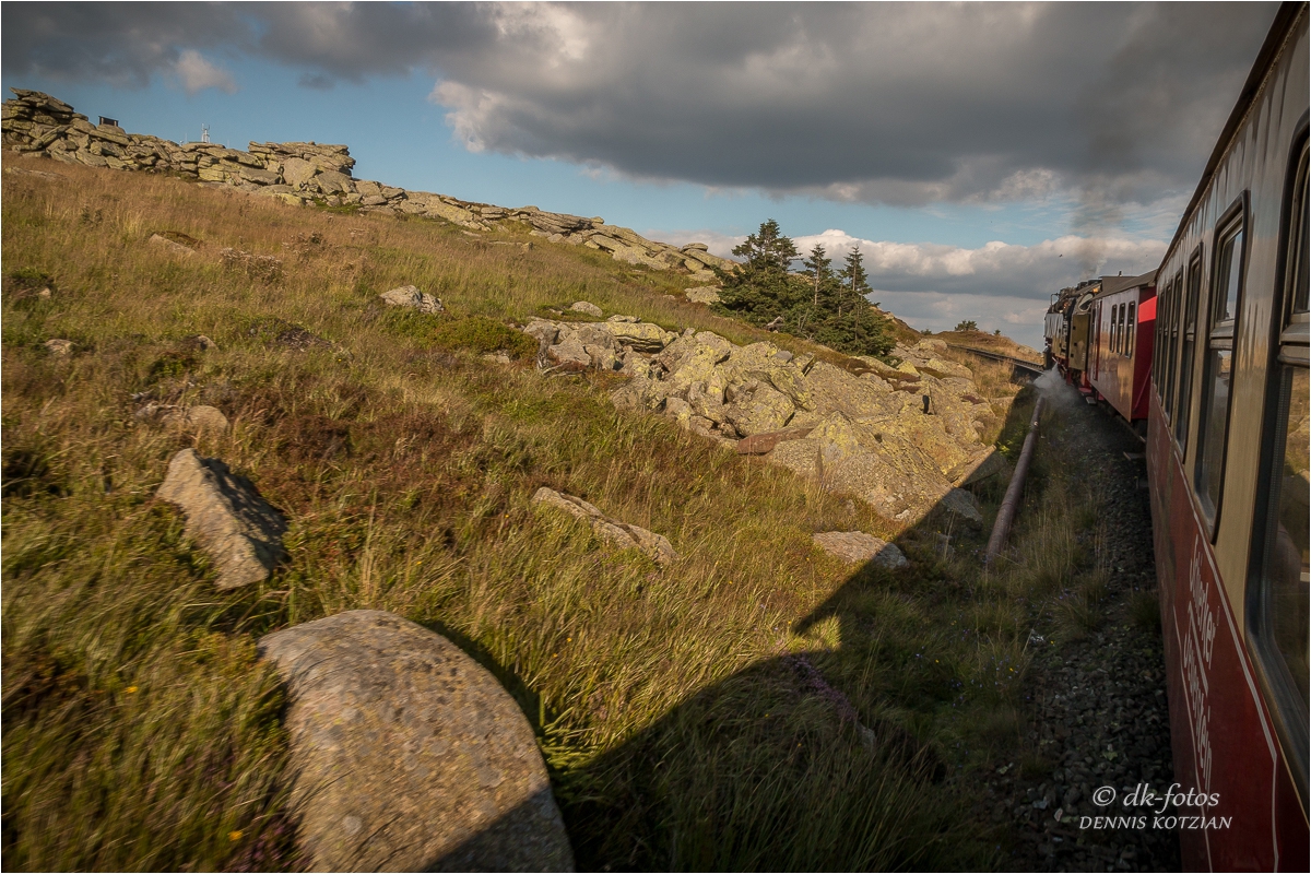Bei bestem Wetter starteten wir unsere geplante Brockentour. Unser Ziel war es gewesen einen Sonnenuntergang auf dem Brocken zu erleben und zu fotografieren. Normalerweise wandern wir zum Brocken hoch, aber diesmal sind wir entspannt mit der historischen Brockenbahn hochgefahren.