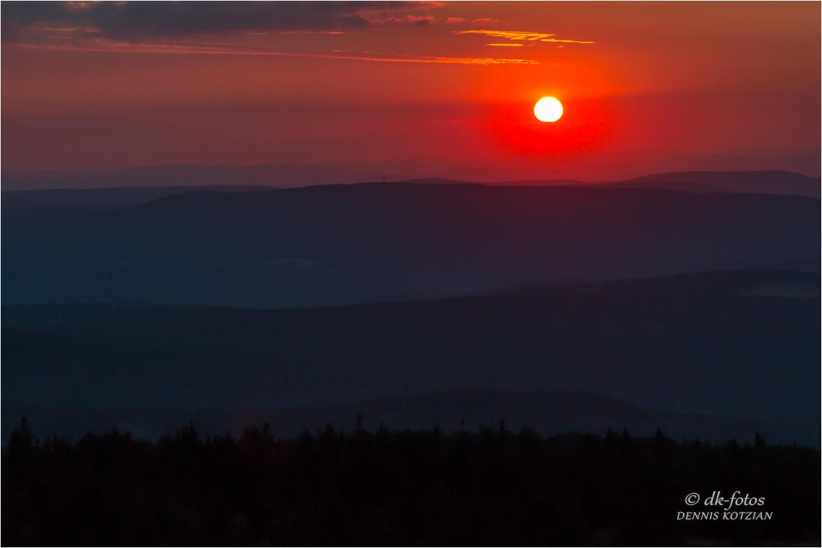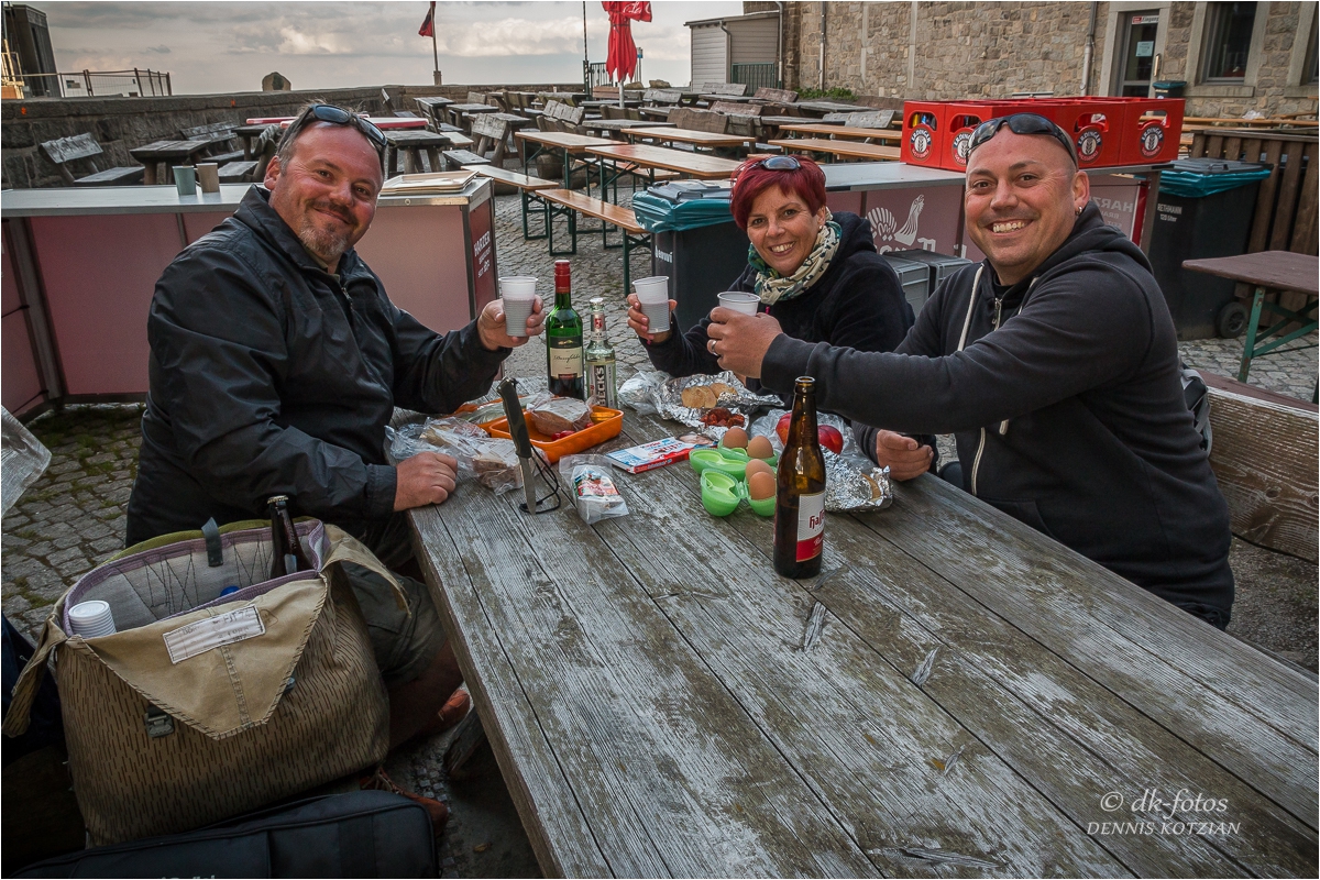 Die Brockenfahrt von Schierke dauerte ca. 30 min. Nach einer entspannten Fahrt wurden wir mit einem wunderbaren Ausblick über den gesamten Harz belohnt. Zusätzlich wurden wir von einen der drei Füchsen die dort oben wie die Made im Speck leben willkommen geheißen. Nachdem wir die ersten Fotos geschossen hatten, haben wir uns ein geschütztes Plätzchen gesucht und ausgiebig eine Brotzeit genommen. Nach einer einstündigen Pause wurden weitere Fotos von dem langersehnten Sonnenuntergang geschossen und wir genossen jede Sekunde wie der Himmel sich verfärbte.