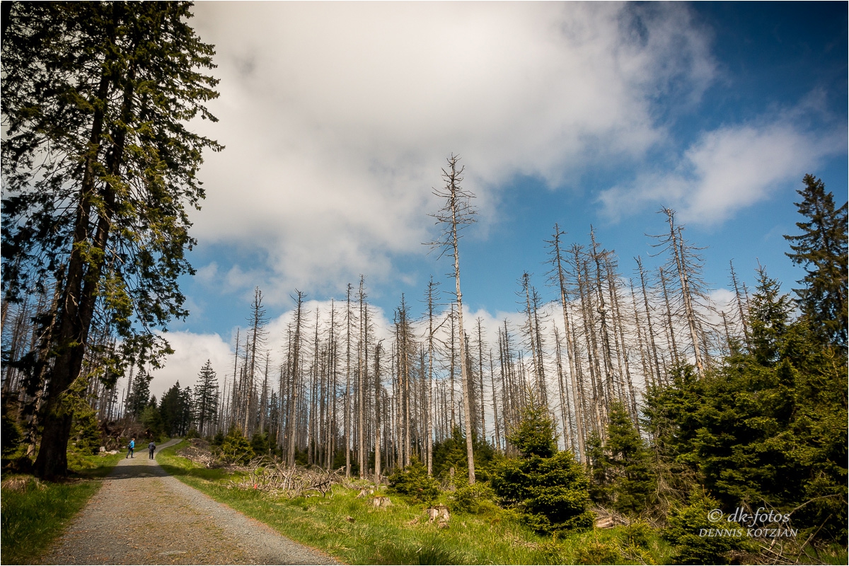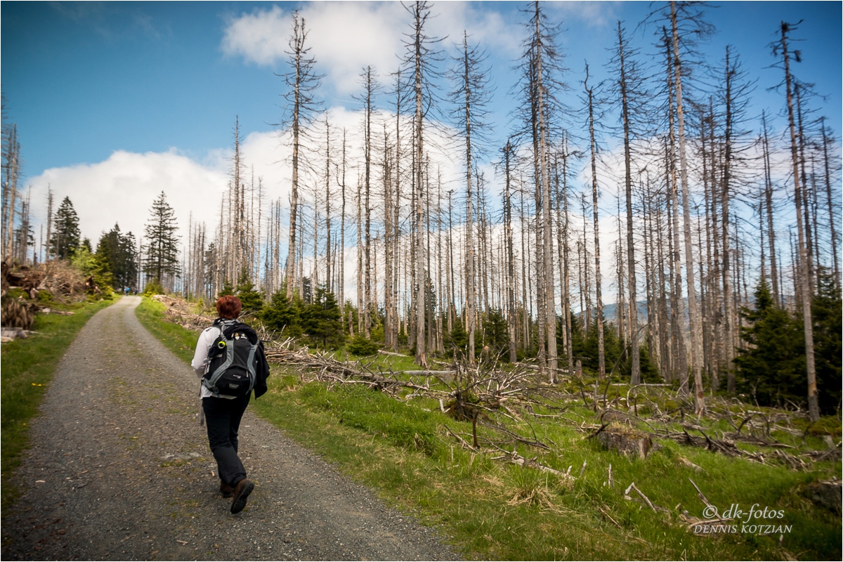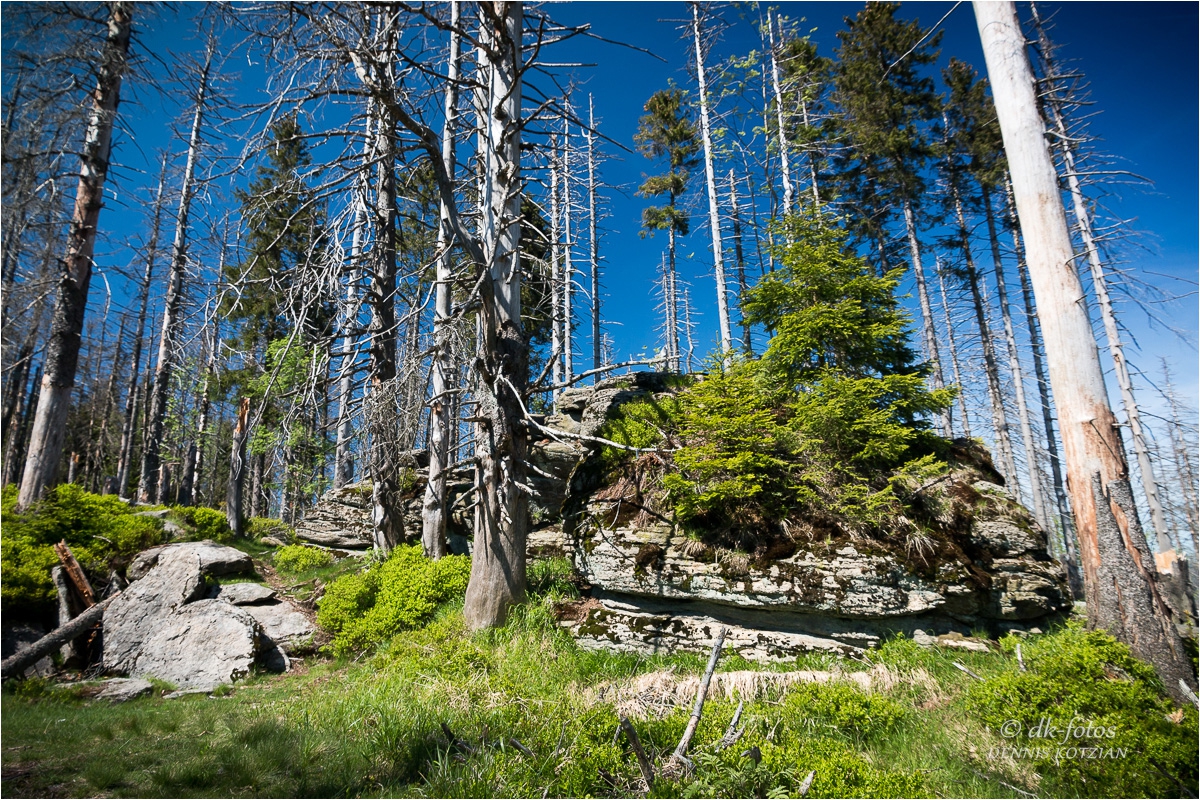 die kahlen Bäume kommen vom Borkenkäfer und man lässt der Natur auch freien Lauf, man greift dort nicht mehr ein