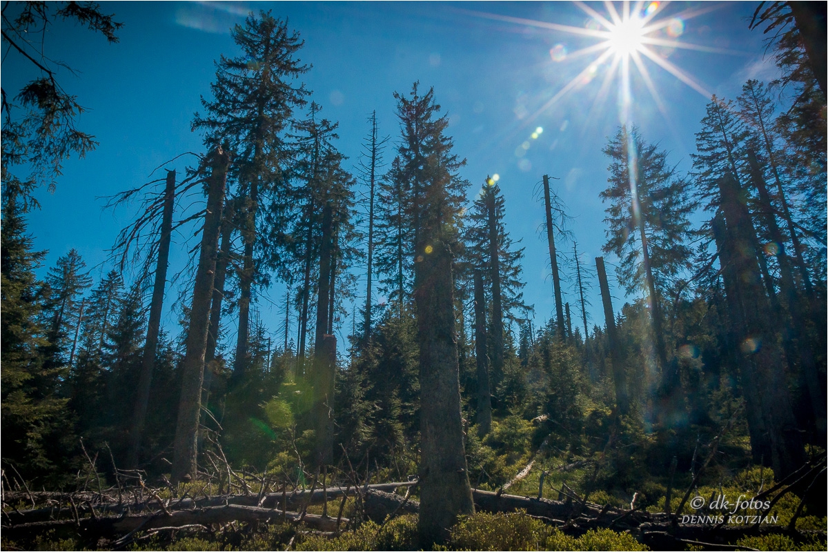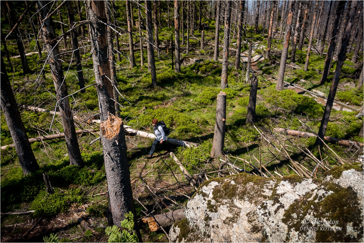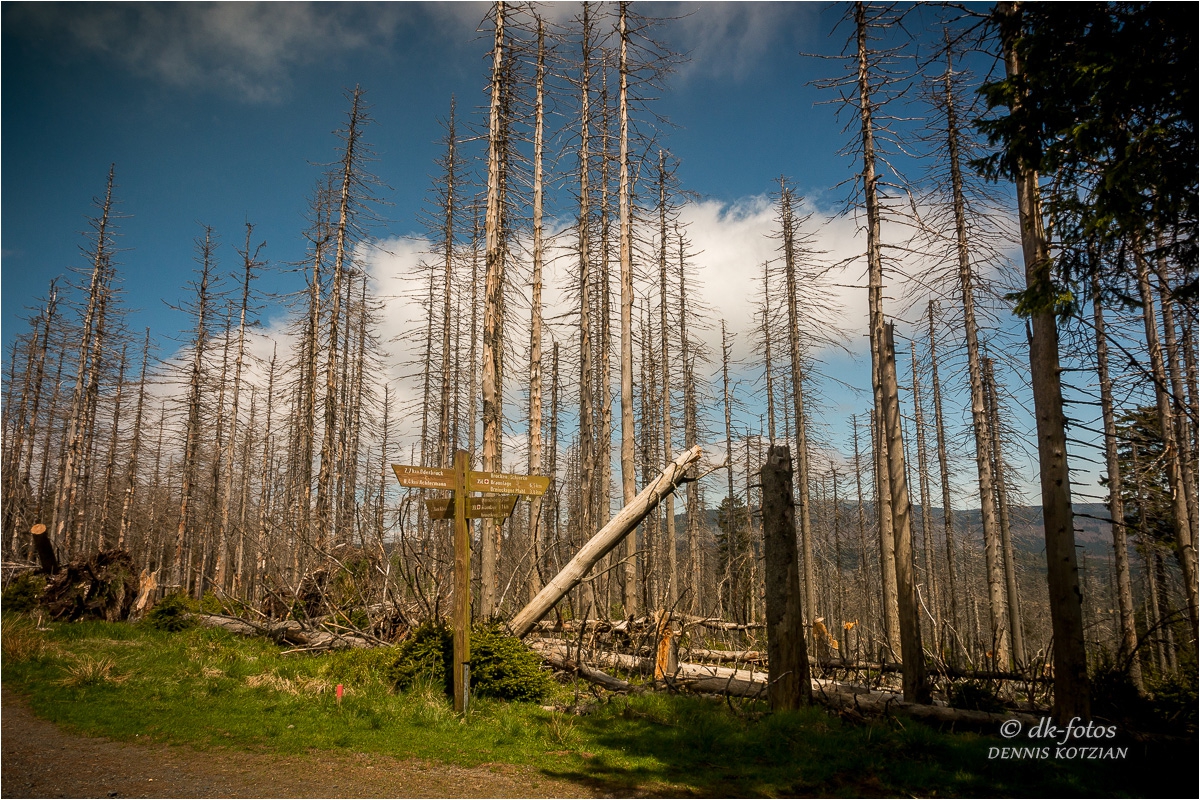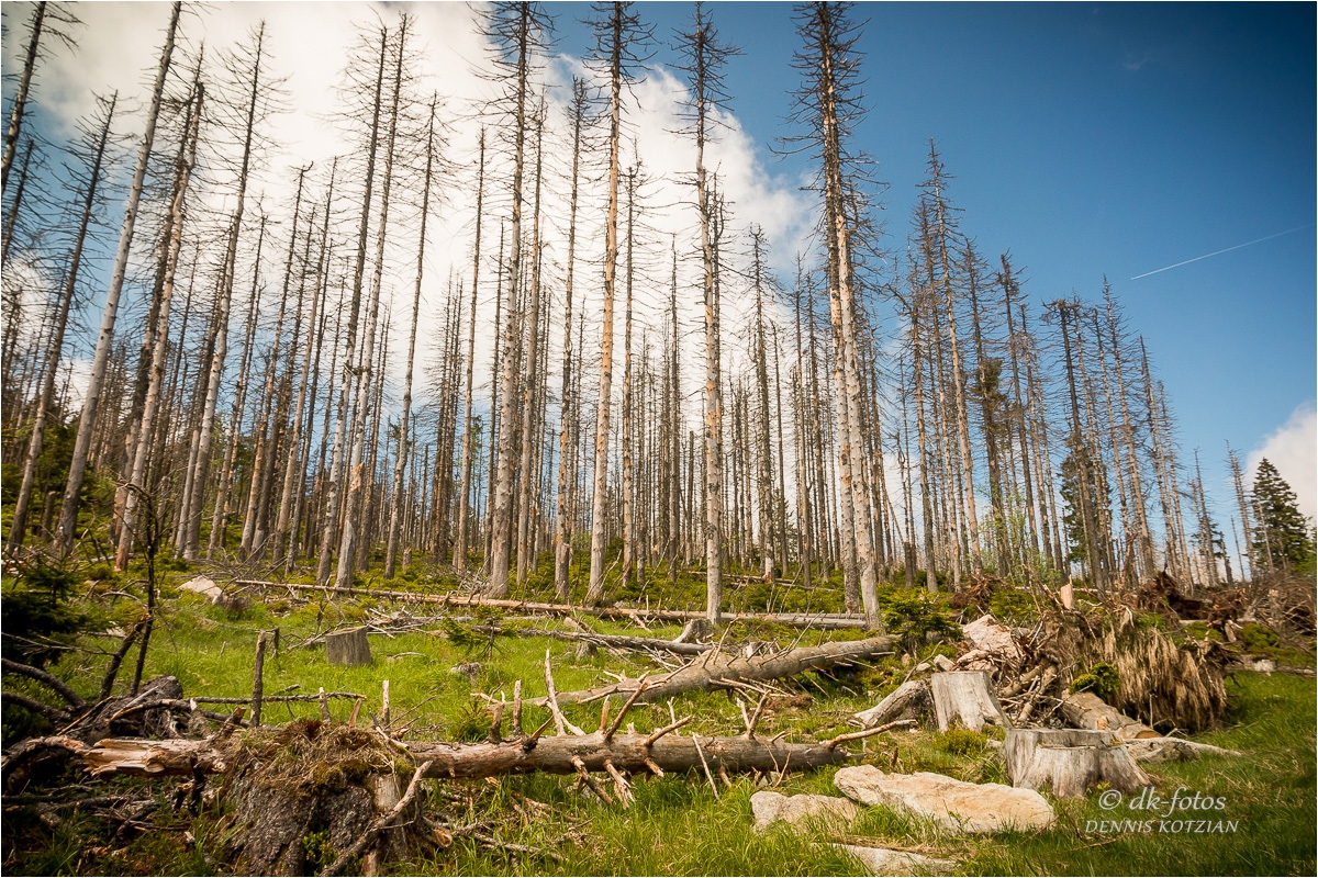 die kahlen Bäume kommen vom Borkenkäfer und man lässt der Natur auch freien Lauf, man greift dort nicht mehr ein