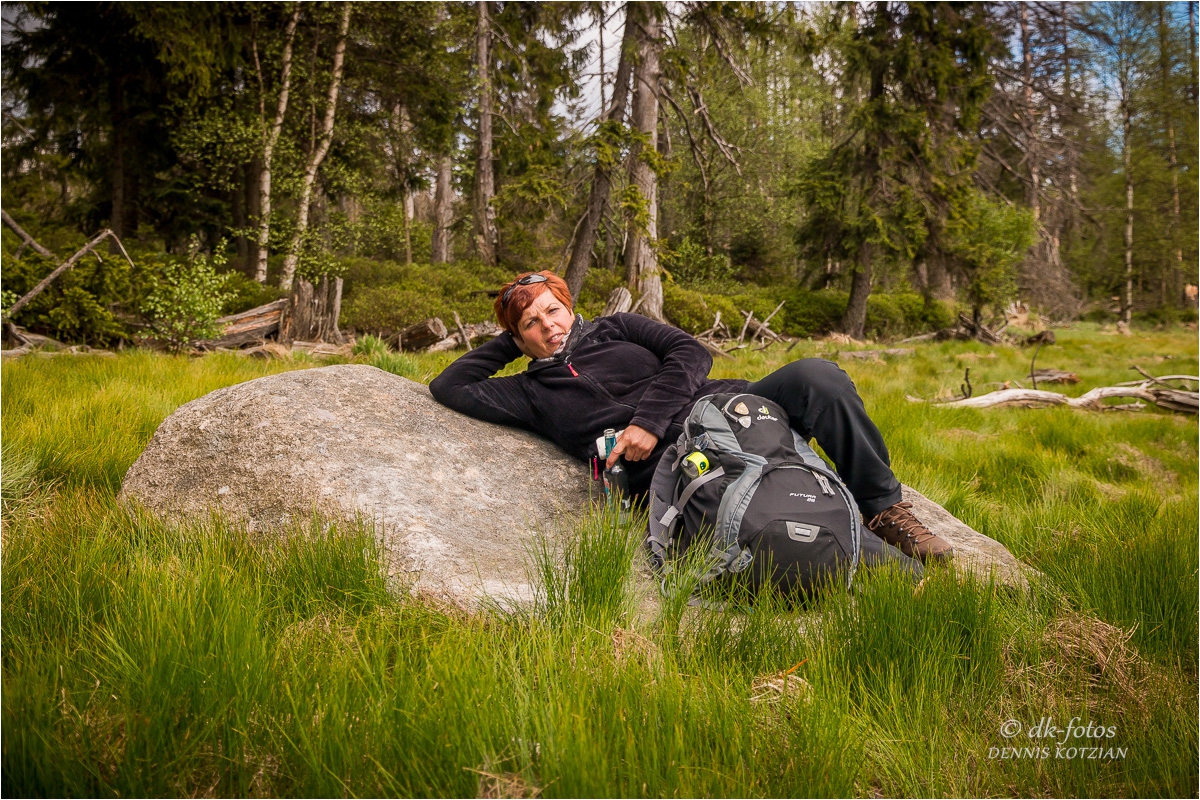 Runter ging es dann den schwierigeren aber kürzeren Weg. Der Rundweg war jetzt nicht sehr weit ca. 4 km und somit war noch Zeit für ne zweite Tour. Ab zum Oderteich, liegt in der Nähe und dort die Stempelstelle 217. Ein sehr schöner Rundweg um den Oderteich mit schönen Badestellen ca. 4 km. Jo vier Stempel im Sack einen schönen Tag bei bestem Wetter verlebt und nun kann es wieder nach Hause gehen.