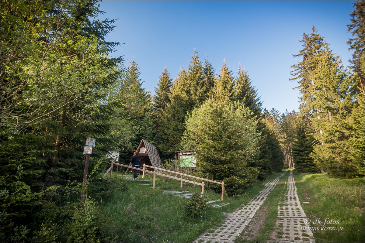 Jetzt geht’s zur Achtermannshöhe, über Braunlage gefahren haben wir das Auto am Königskrug stehen lassen. Für den Aufstieg haben wir den längeren aber leicht begehbaren Weg gewählt.