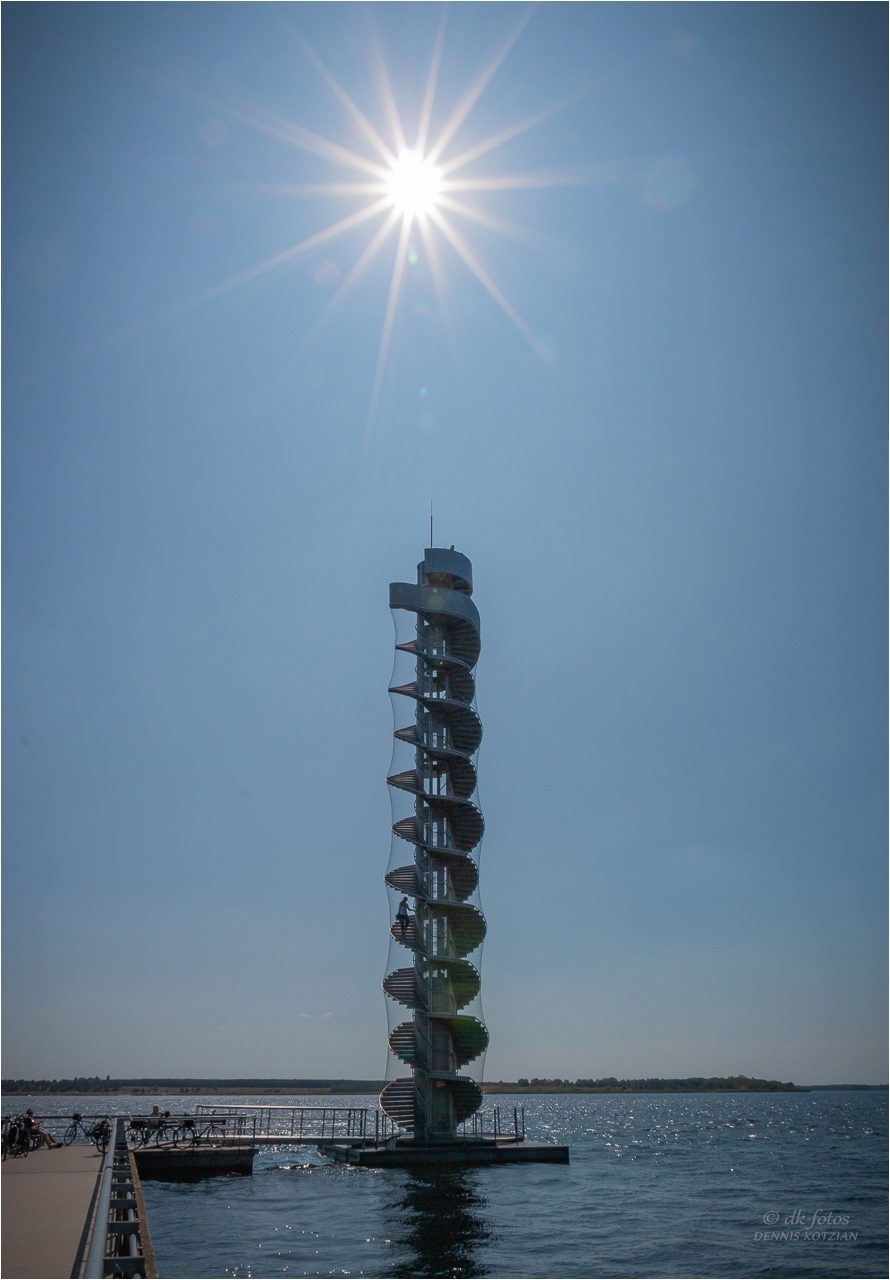 Am Pegelturm wurde erstmal halt gemacht und hoch ging es mit einer wunderbaren Sicht über den See und das Umland. Nach einer kurzen Pause ging es weiter, leider hat mich mein „Gaul“ nach ca 5 km im Stich gelassen. Hier ist das hintere „Eisen“ gebrochen sprich Achsenbruch 🙁